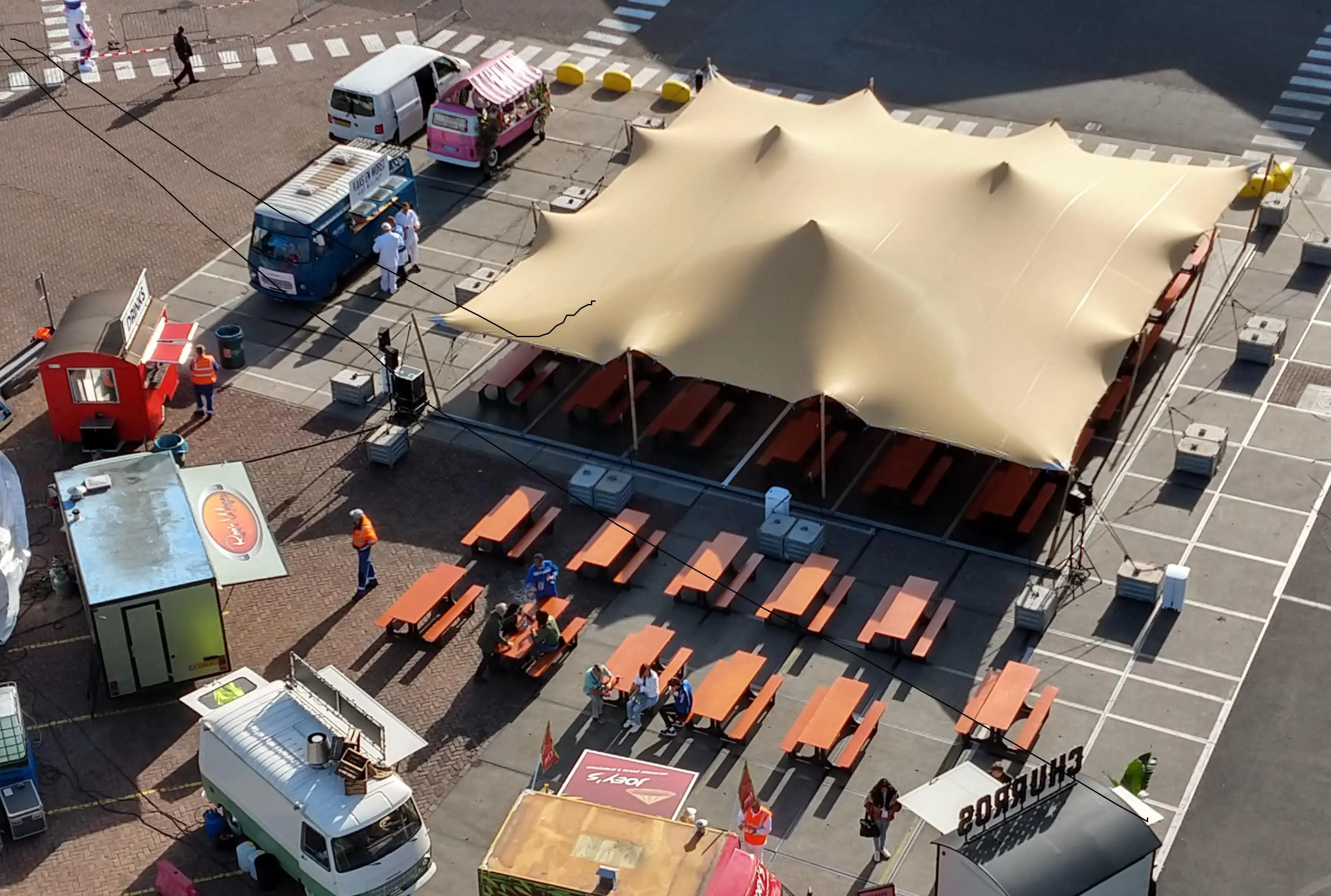 Professionele foodtruckers weten dat de beleving verder gaat dan alleen het voertuig. Daarom brengen ze hun eigen aankleding mee: