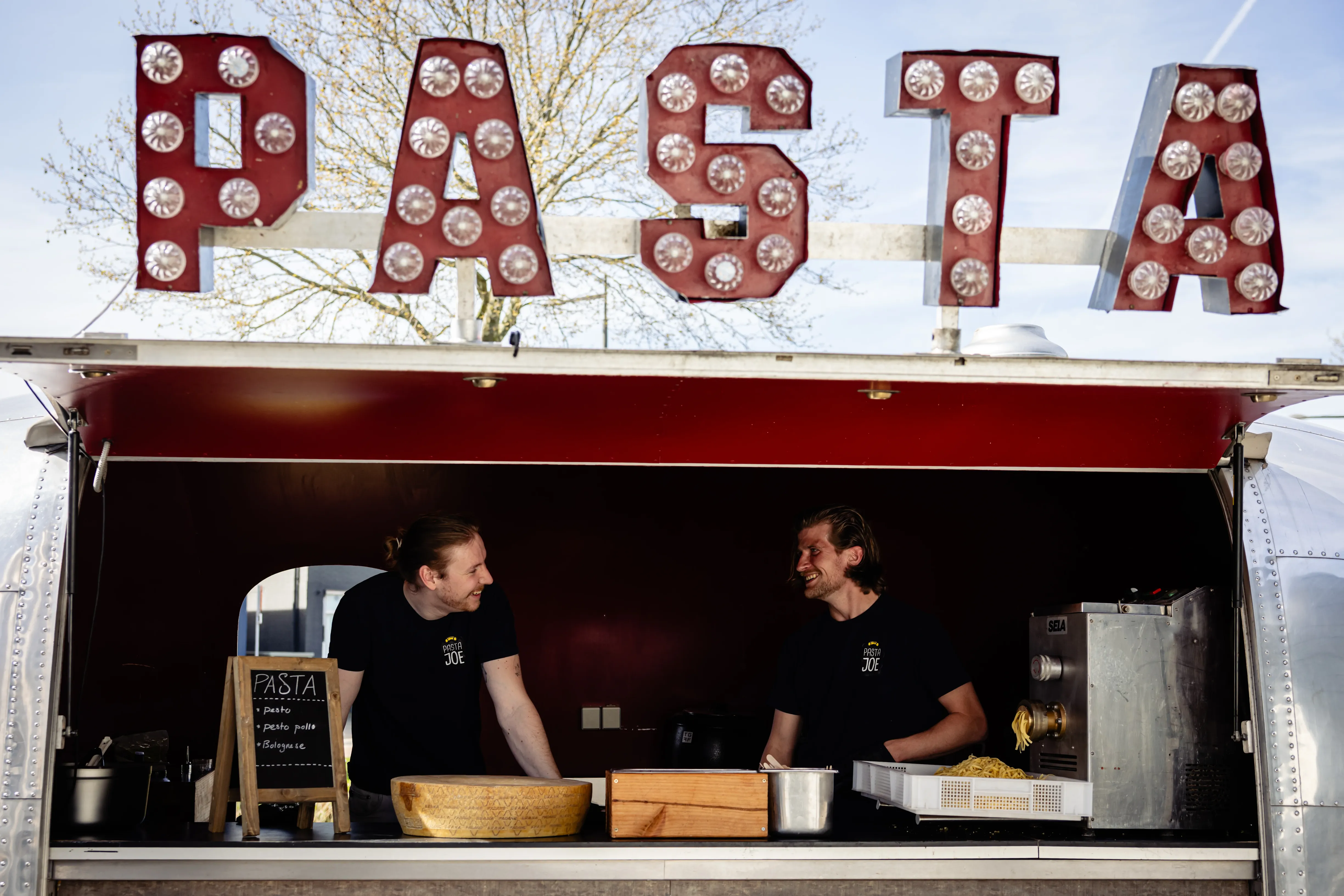 Verse pasta live gedraaid vanuit een Airstream uit 1962. Concessiehouder RAI Amsterdam en indoor counter beschikbaar voor elk event.