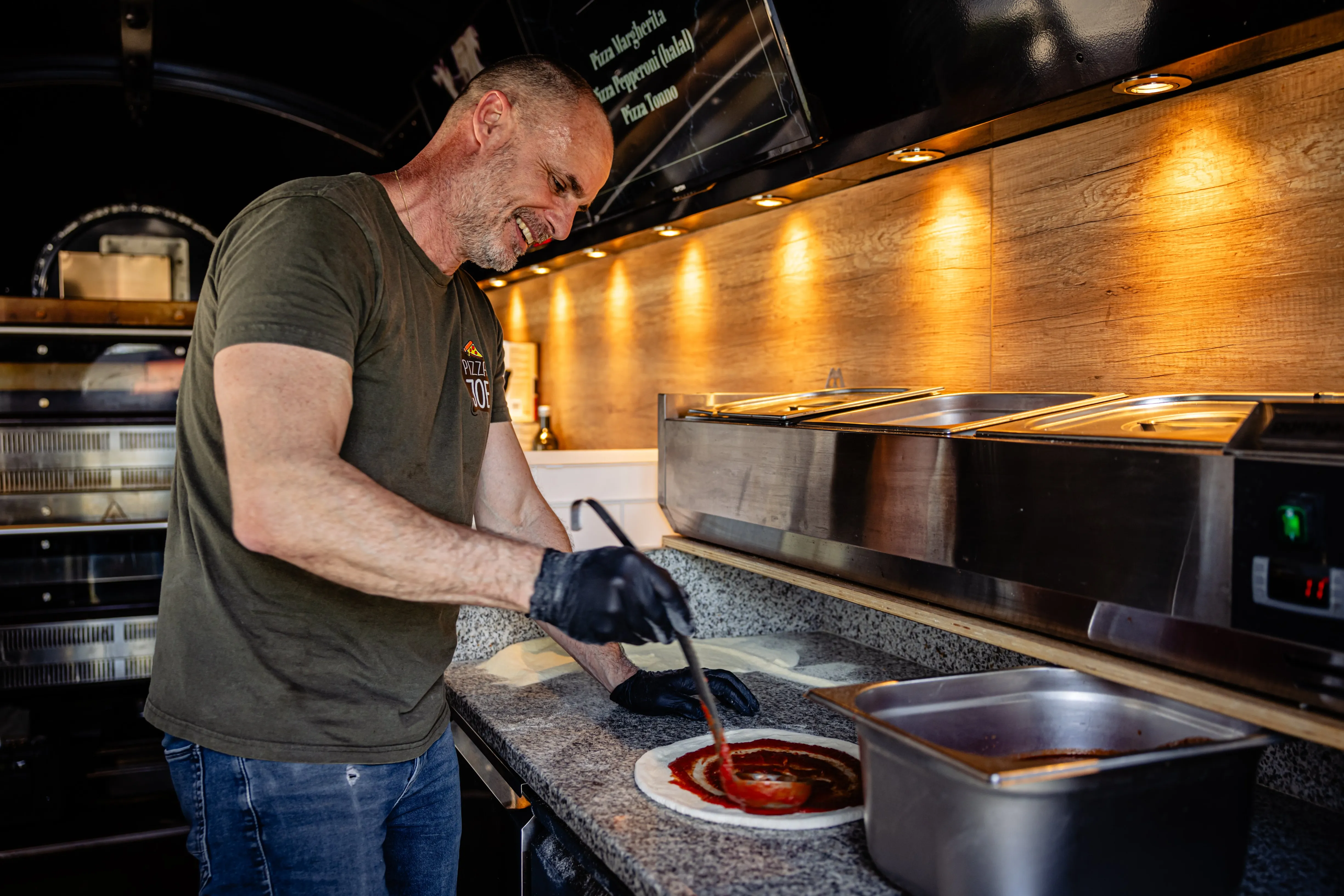 Acht houtgestookte ovens vol authentieke Italiaanse pizza's. Fratelli e Pizza serveert antipasti, tiramisu en meer. Tot 350 pizza's per uur!