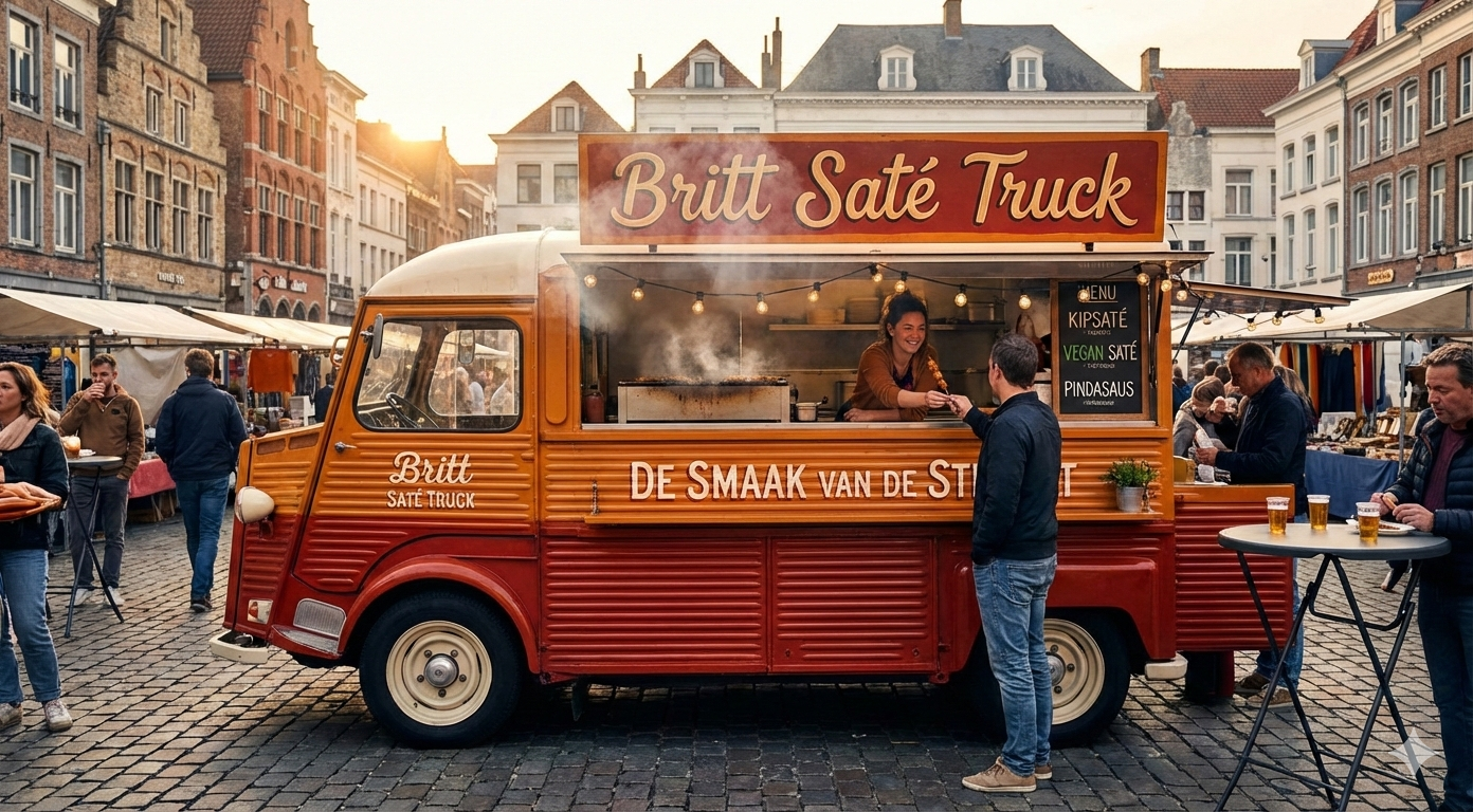 Ruik je die heerlijke geur al? Welkom bij de Britt Saté Truck, dé plek waar passie en pinda’s samenkomen. Britt grilt haar stokjes precies