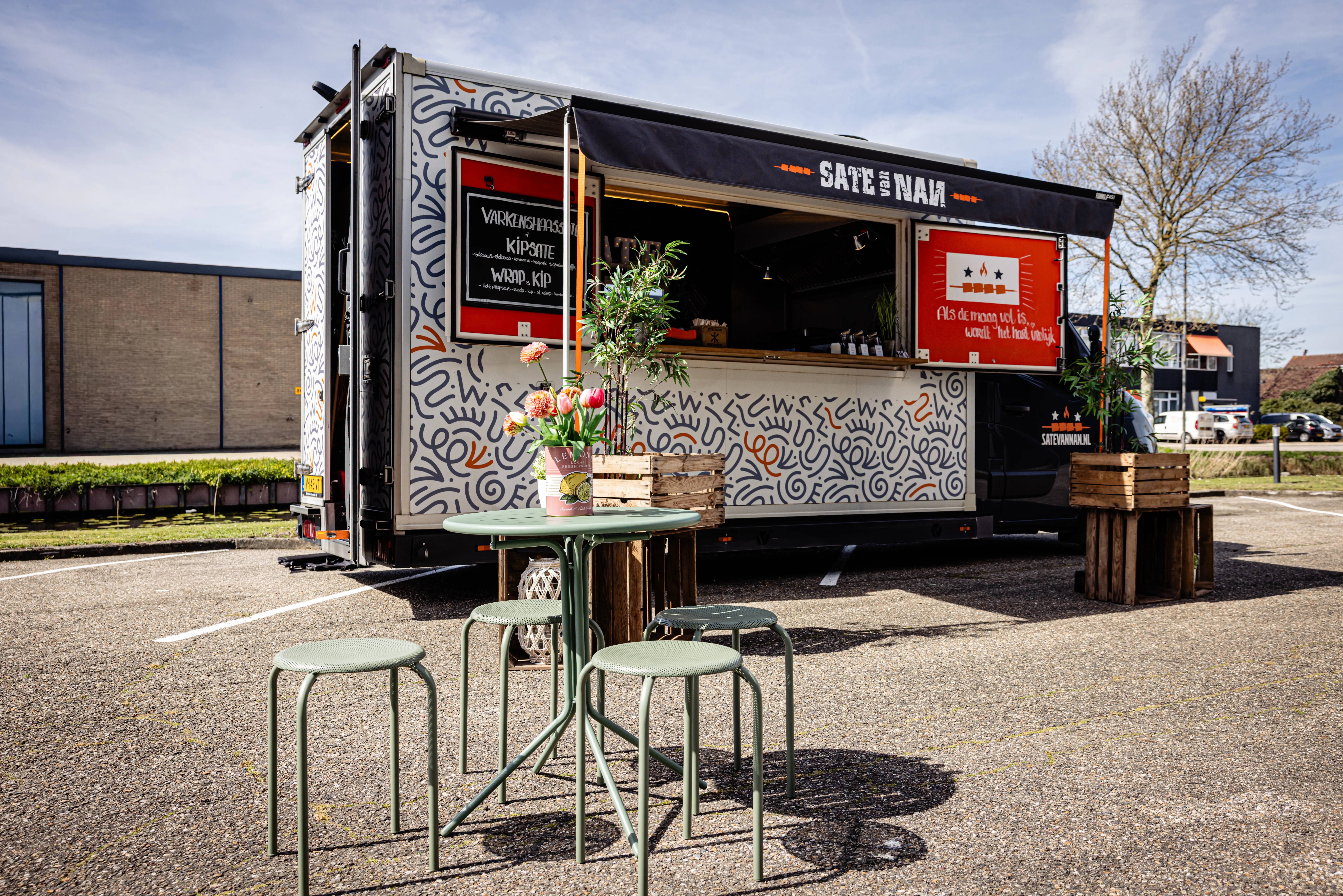 Saté met een Hollands tintje, vers gegrild vanuit een omgebouwde Bedford. Eigen kruidenmix en buffetmogelijkheden voor zakelijke events.