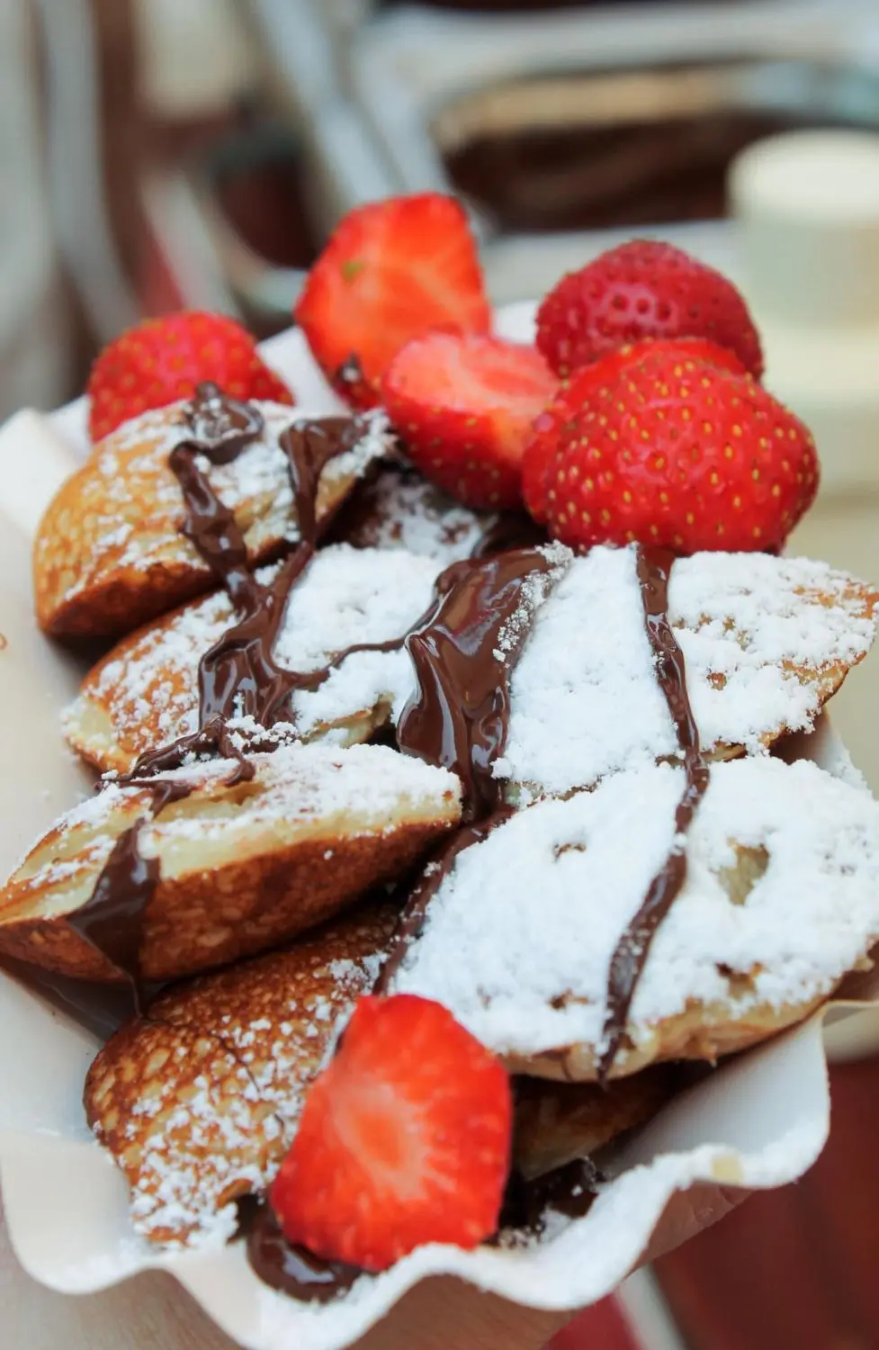 - Aardbei slagroom: Poffertjes met verse aardbeien en slagroom